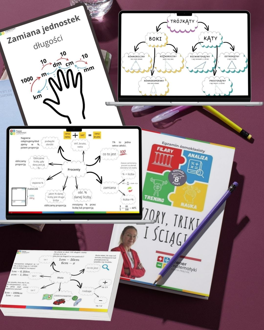 „Wzory, triki i ściągi” to graficzne kompendium pod egzamin ósmoklasisty. Bez chaosu. Bez ściany tekstu. Bez szukania po zeszytach.